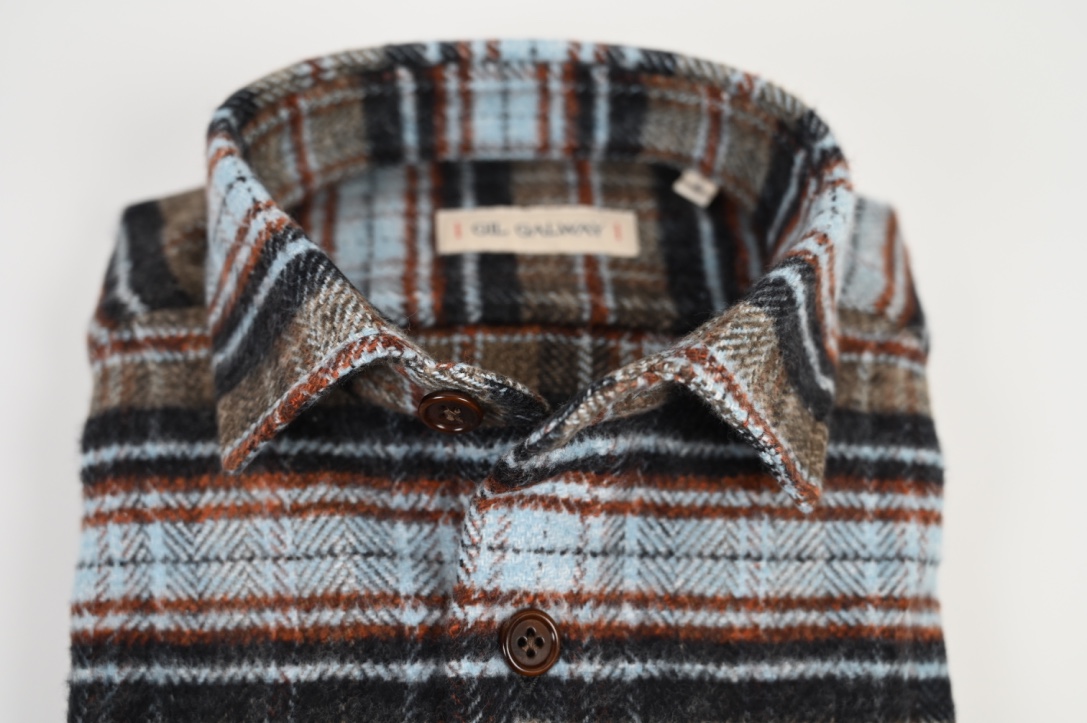 Motifs carreaux tissés, Gil Galway vous propose un petit col Français « piave ».